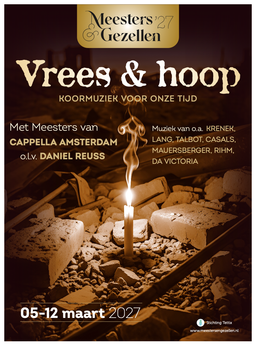 Het thema van deze concertserie zal zijn: Vrees en hoop. Koormuziek voor deze tijd, met werken van o.a. David Lang, Joby Talbot, Ernst Krenek en Pablo Casals (zie voor volledig programma pagina Programma 2027)